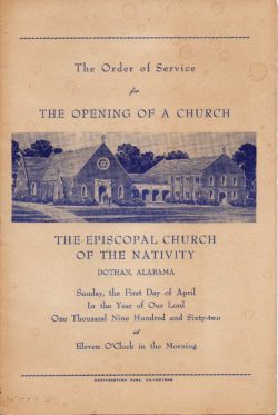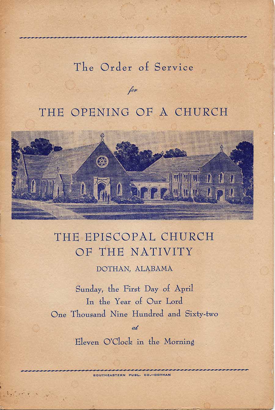 Faithful generations have gone forth into the world from the Episcopal Church of the Nativity for more than 100 years. It was in 1905 when Bishop C.M. Beckwith arrived in Dothan, Alabama, with Rev. W.N. Claybrook to organize an Episcopal Mission.